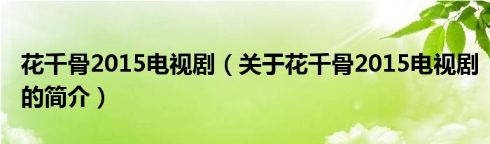本文關于花千骨2015電視劇的簡介就講解完畢,希望對大家有所幫助。