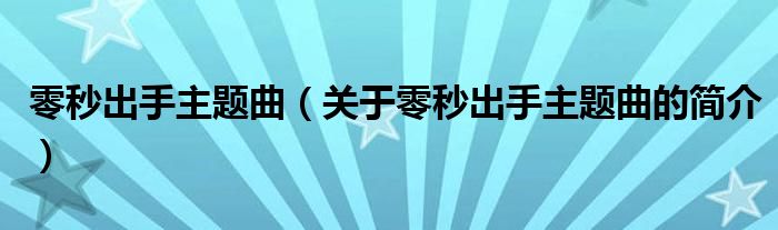 本文關于零秒出手主題曲的簡介就講解完畢,希望對大家有所幫助。