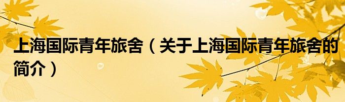 本文關于上海國際青年旅舍的簡介就講解完畢,希望對大家有所幫助。