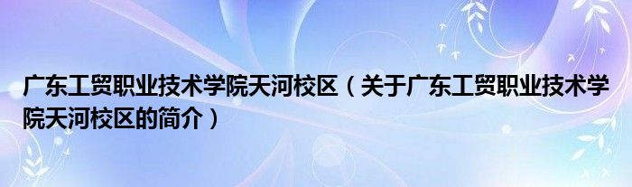 本文關于廣東工貿職業技術學院天河校區的簡介就講解完畢,希望對大家有所幫助。