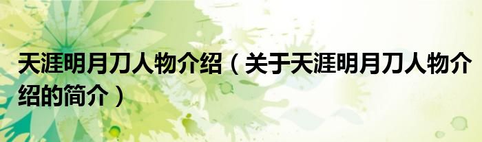本文關于天涯明月刀人物介紹的簡介就講解完畢,希望對大家有所幫助。