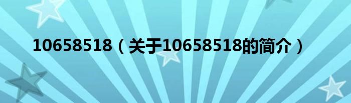 大家好,10658518,關于10658518的簡介很多人還不知道,現在讓我們一起來看看吧!