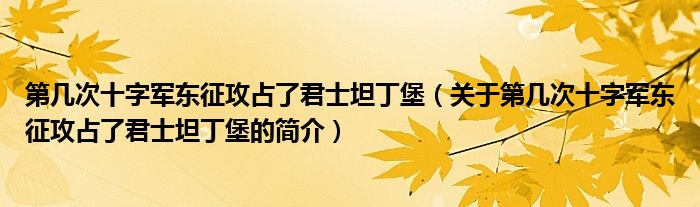 本文關(guān)于第幾次十字軍東征攻占了君士坦丁堡的簡介就講解完畢,希望對大家有所幫助。
