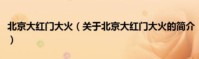 大家好,北京大紅門大火,關于北京大紅門大火的簡介很多人還不知道,現在讓我們一起來看看吧!