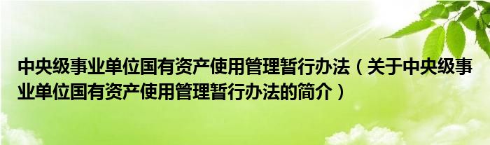 本文關(guān)于中央級(jí)事業(yè)單位國(guó)有資產(chǎn)使用管理暫行辦法的簡(jiǎn)介就講解完畢,希望對(duì)大家有所幫助。