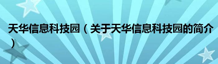 本文關于天華信息科技園的簡介就講解完畢,希望對大家有所幫助。