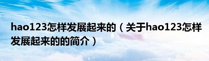 大家好,hao123怎樣發(fā)展起來的,關(guān)于hao123怎樣發(fā)展起來的的簡介很多人還不知道,現(xiàn)在讓我們一起來看看吧!