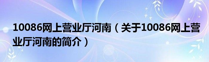 本文關(guān)于10086網(wǎng)上營業(yè)廳河南的簡介就講解完畢,希望對大家有所幫助。