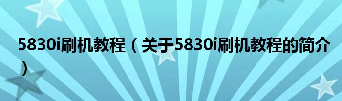 本文關于5830i刷機教程的簡介就講解完畢,希望對大家有所幫助。