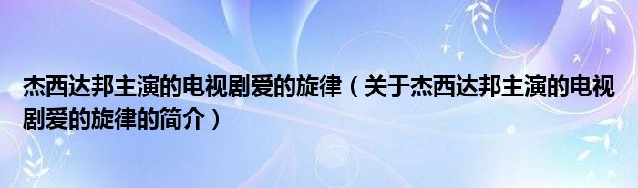 本文關于杰西達邦主演的電視劇愛的旋律的簡介就講解完畢,希望對大家有所幫助。