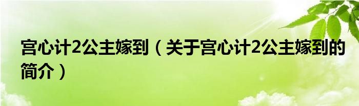 本文關于宮心計2公主嫁到的簡介就講解完畢,希望對大家有所幫助。