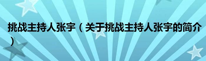 本文關(guān)于挑戰(zhàn)主持人張宇的簡(jiǎn)介就講解完畢,希望對(duì)大家有所幫助。