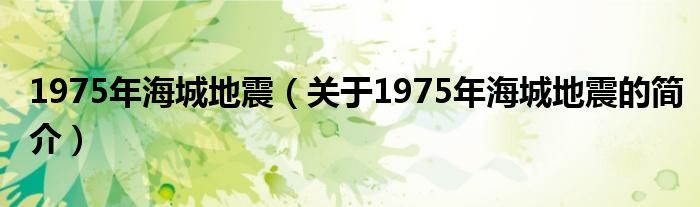 大家好,1975年海城地震,關于1975年海城地震的簡介很多人還不知道,現在讓我們一起來看看吧!