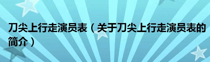 本文關于刀尖上行走演員表的簡介就講解完畢,希望對大家有所幫助。