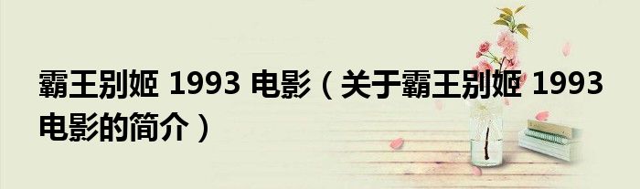 大家好,霸王別姬 1993 電影,關(guān)于霸王別姬 1993 電影的簡介很多人還不知道,現(xiàn)在讓我們一起來看看吧!