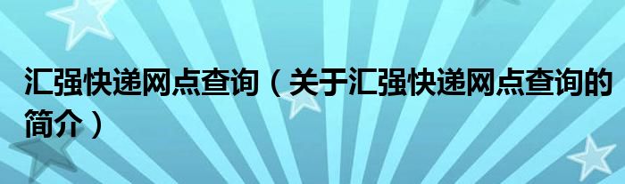 本文關(guān)于匯強快遞網(wǎng)點查詢的簡介就講解完畢,希望對大家有所幫助。