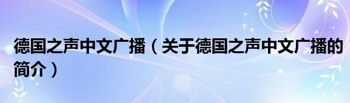 大家好,德國之聲中文廣播,關(guān)于德國之聲中文廣播的簡介很多人還不知道,現(xiàn)在讓我們一起來看看吧!
