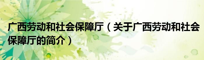 大家好,廣西勞動和社會保障廳,關于廣西勞動和社會保障廳的簡介很多人還不知道,現在讓我們一起來看看吧!