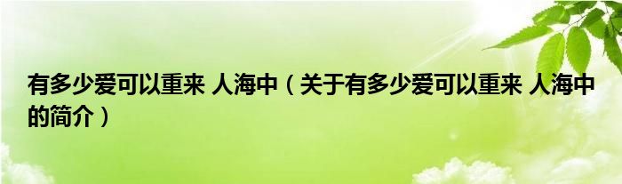 大家好,有多少愛可以重來 人海中,關于有多少愛可以重來 人海中的簡介很多人還不知道,現在讓我們一起來看看吧!