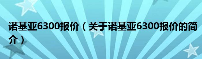 大家好,諾基亞6300報價,關于諾基亞6300報價的簡介很多人還不知道,現在讓我們一起來看看吧!