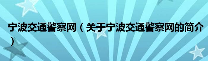 本文關于寧波交通警察網的簡介就講解完畢,希望對大家有所幫助。