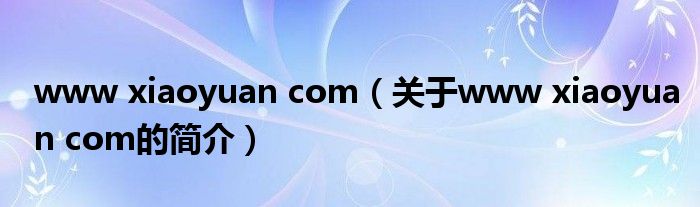 本文關(guān)于www xiaoyuan com的簡介就講解完畢,希望對大家有所幫助。