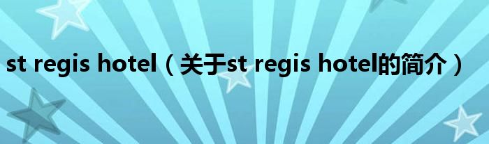 大家好,st regis hotel,關于st regis hotel的簡介很多人還不知道,現在讓我們一起來看看吧!