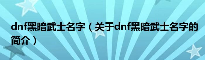 大家好,dnf黑暗武士名字,關于dnf黑暗武士名字的簡介很多人還不知道,現在讓我們一起來看看吧!