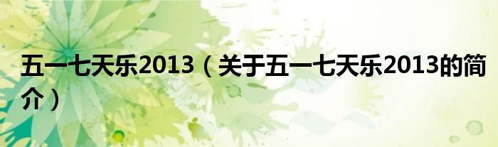 大家好,五一七天樂2013,關于五一七天樂2013的簡介很多人還不知道,現在讓我們一起來看看吧!