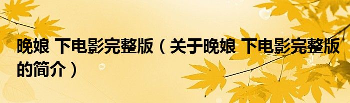 本文關于晚娘 下電影完整版的簡介就講解完畢,希望對大家有所幫助。
