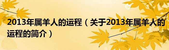 本文關于2013年屬羊人的運程的簡介就講解完畢,希望對大家有所幫助。