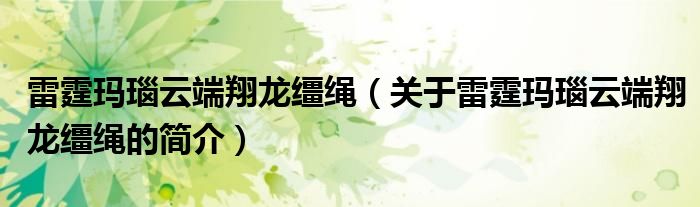 大家好,雷霆瑪瑙云端翔龍韁繩,關于雷霆瑪瑙云端翔龍韁繩的簡介很多人還不知道,現在讓我們一起來看看吧!