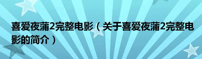 本文關(guān)于喜愛夜蒲2完整電影的簡介就講解完畢,希望對大家有所幫助。