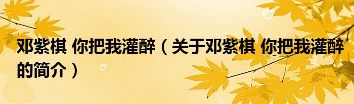 1、《你把我灌醉》是鄧紫棋改編并演唱的歌曲,原唱為黃大煒,由姚若龍填詞,黃大煒譜曲,后收錄在鄧紫棋2013年發行的首張精選專輯《The Best of G.E.M. 2008-2012》中。