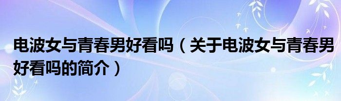 本文關(guān)于電波女與青春男好看嗎的簡介就講解完畢,希望對大家有所幫助。
