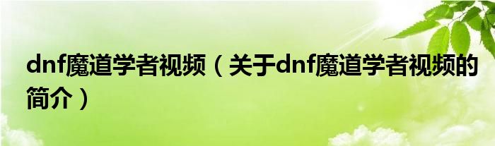 大家好,dnf魔道學者視頻,關于dnf魔道學者視頻的簡介很多人還不知道,現在讓我們一起來看看吧!