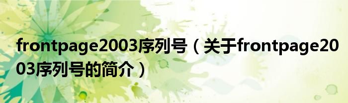 本文關于frontpage2003序列號的簡介就講解完畢,希望對大家有所幫助。
