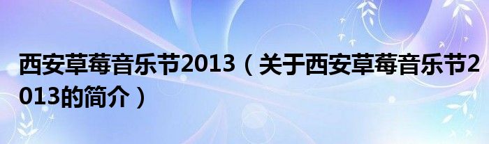 本文關于西安草莓音樂節2013的簡介就講解完畢,希望對大家有所幫助。