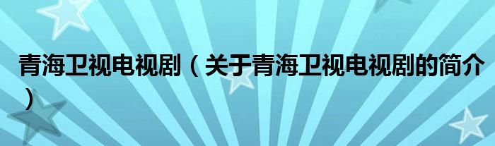本文關于青海衛視電視劇的簡介就講解完畢,希望對大家有所幫助。