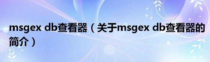 本文關于msgex db查看器的簡介就講解完畢,希望對大家有所幫助。