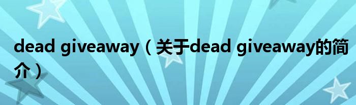 本文關于dead giveaway的簡介就講解完畢,希望對大家有所幫助。