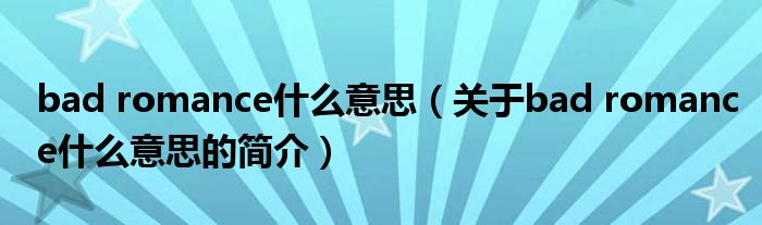 本文關于bad romance什么意思的簡介就講解完畢,希望對大家有所幫助。