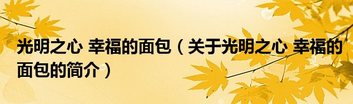 大家好,光明之心 幸福的面包,關于光明之心 幸福的面包的簡介很多人還不知道,現在讓我們一起來看看吧!