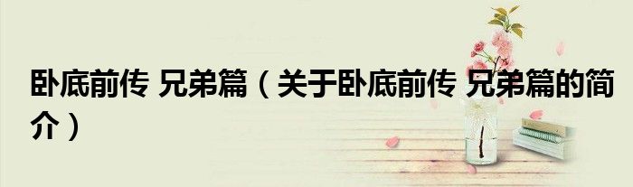 本文關于臥底前傳 兄弟篇的簡介就講解完畢,希望對大家有所幫助。