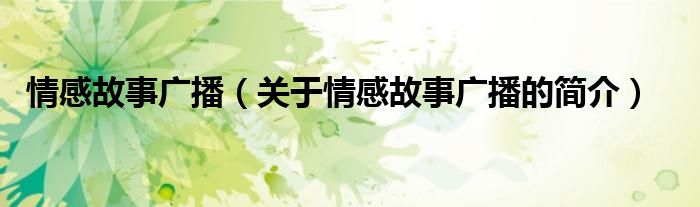本文關于情感故事廣播的簡介就講解完畢,希望對大家有所幫助。