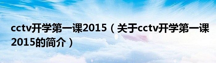 本文關于cctv開學第一課2015的簡介就講解完畢,希望對大家有所幫助。
