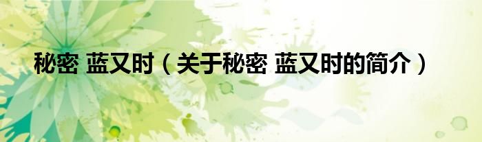 本文關(guān)于秘密 藍(lán)又時的簡介就講解完畢,希望對大家有所幫助。