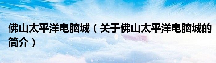 大家好,佛山太平洋電腦城,關(guān)于佛山太平洋電腦城的簡介很多人還不知道,現(xiàn)在讓我們一起來看看吧!