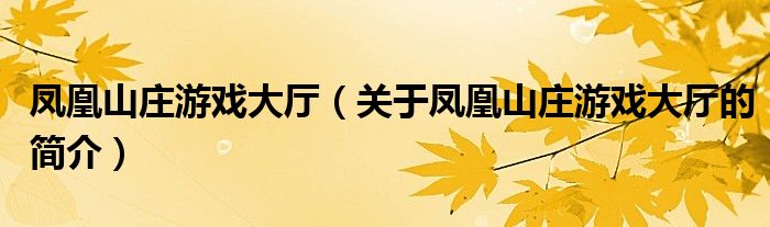 本文關于鳳凰山莊游戲大廳的簡介就講解完畢,希望對大家有所幫助。