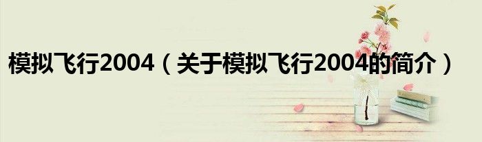 本文關(guān)于模擬飛行2004的簡(jiǎn)介就講解完畢,希望對(duì)大家有所幫助。